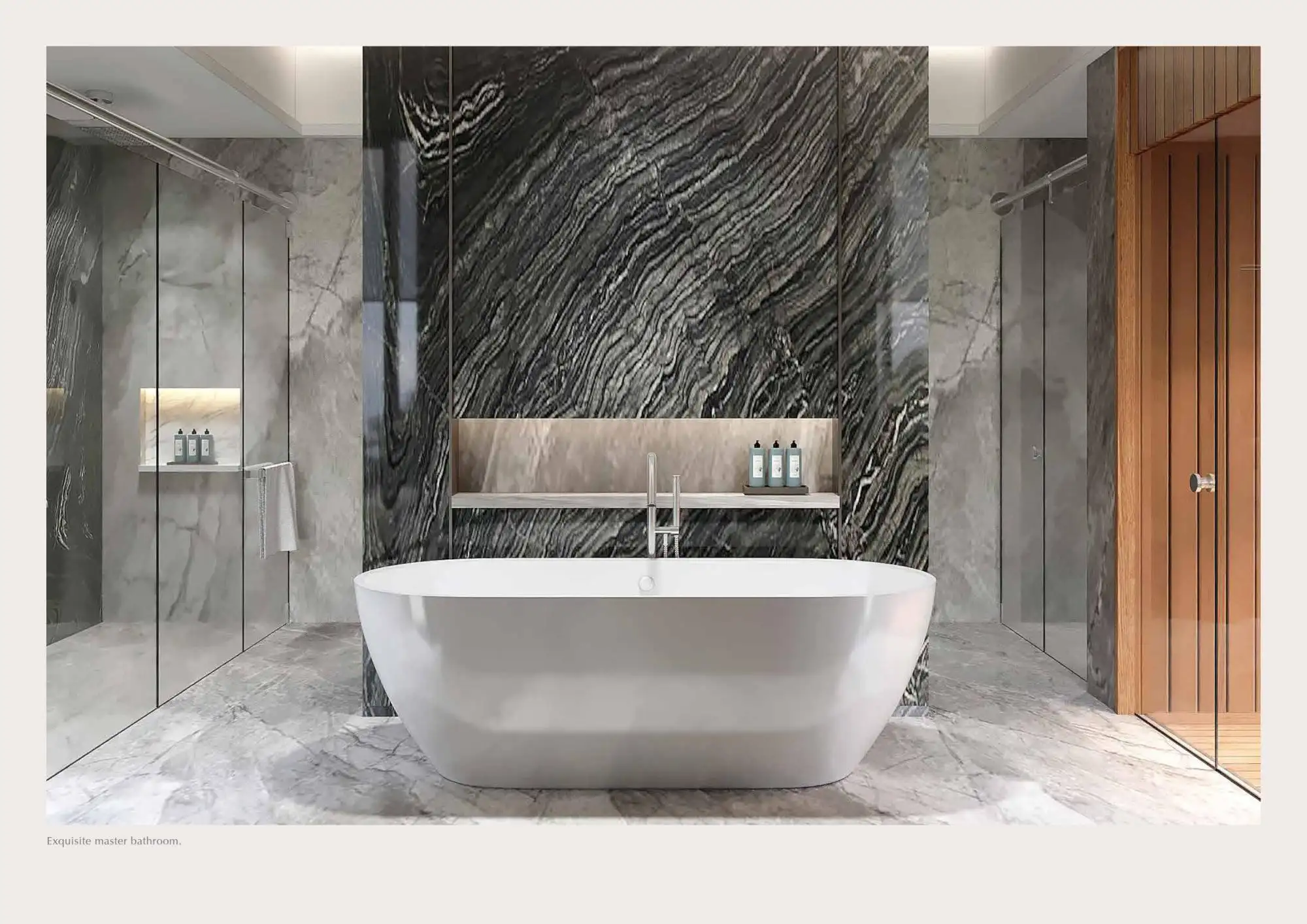 - Kamar master badroom pintu 1,5 m. Drop ceiling dapat, lantai sesuai rc , pintu aluminium, ac central semua kamar pakai spc, wlkin closet kosong, kamar mandi pakai marmer itali, closet 2 wastafel 2 pakai solid surfec, kaca sudah ada dan plafon 2,8m bed tup pakai nya toto dan shower dapat double