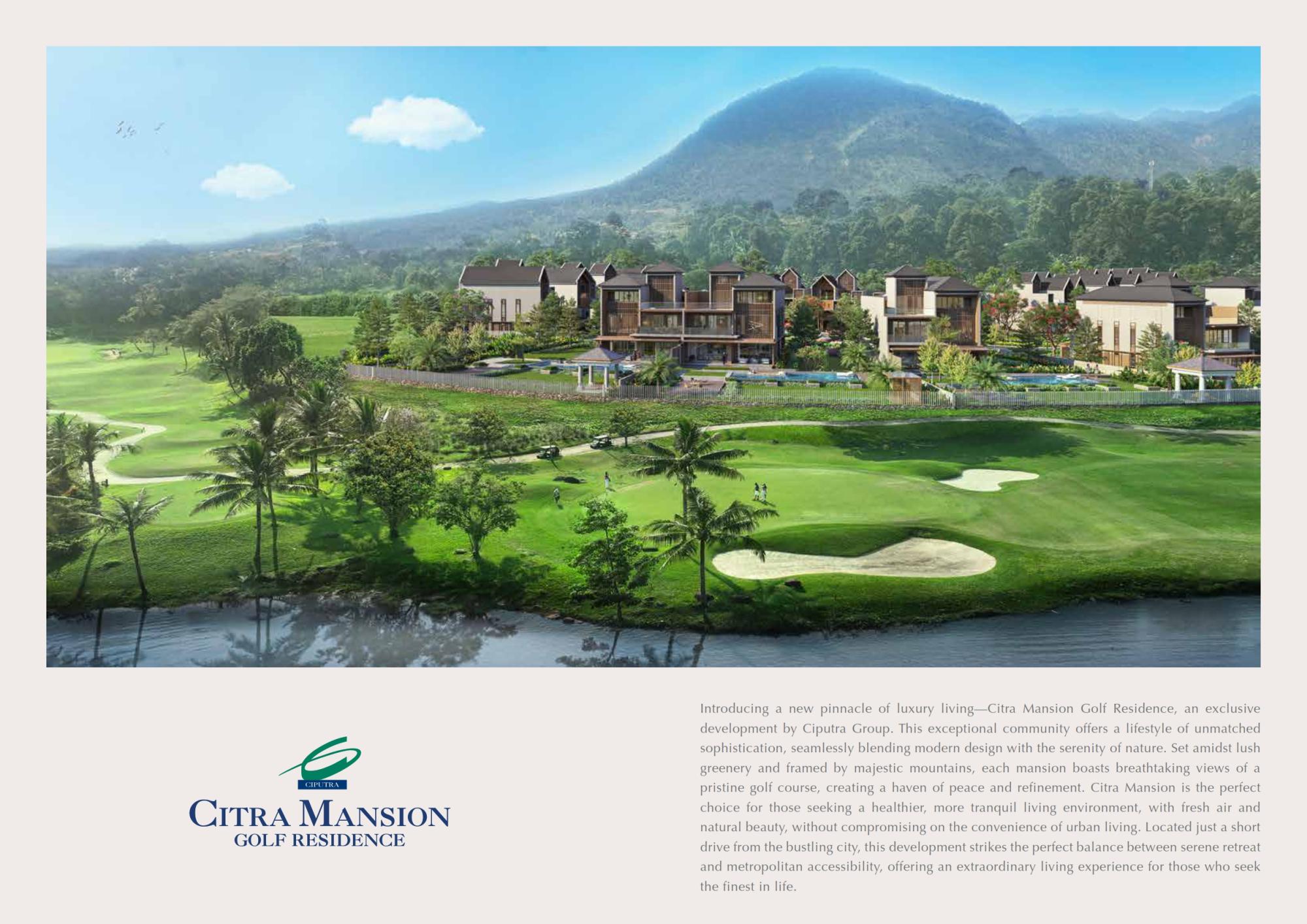 Cluster terbaru dan termewah di Citra City Sentul yaitu Cluster Citra Mansion Golf Residence.